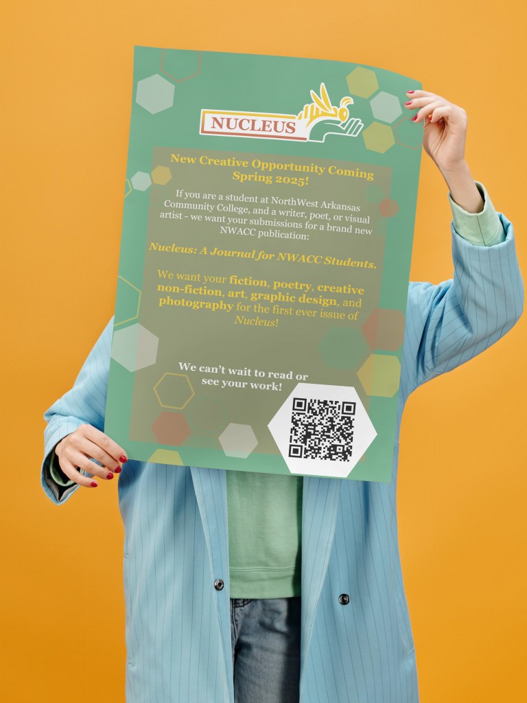 This poster was created for the literary magazine Nucleus. It was used to draw attention to the magazine for students to submit work for the 1st issue. This project was done in conjunction with an entire team.